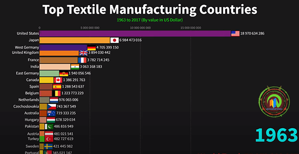 统计数据 1963 2017年世界顶级纺织品制造国各国网友惊讶于中国统治级的优势 樱落网